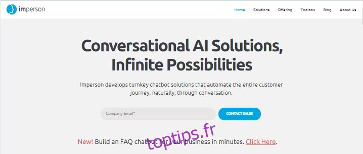 Imperson est un chatbot IA qui propose des solutions sur mesure pour ses clients, se classant parmi les meilleurs pour les sites web. Ses caractéristiques principales :