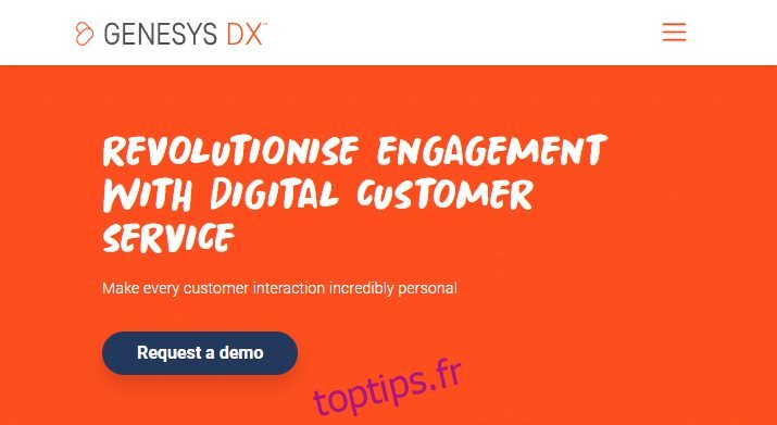 Genesys DX, anciennement Bold360, est un chatbot IA en ligne qui permet aux entreprises d’améliorer les interactions client en temps réel. Ses avantages :