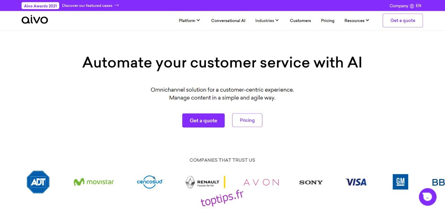 Aivo est un système de chatbot d’IA performant avec des clients comme Visa, Uber, LG et General Motors. Ses atouts :