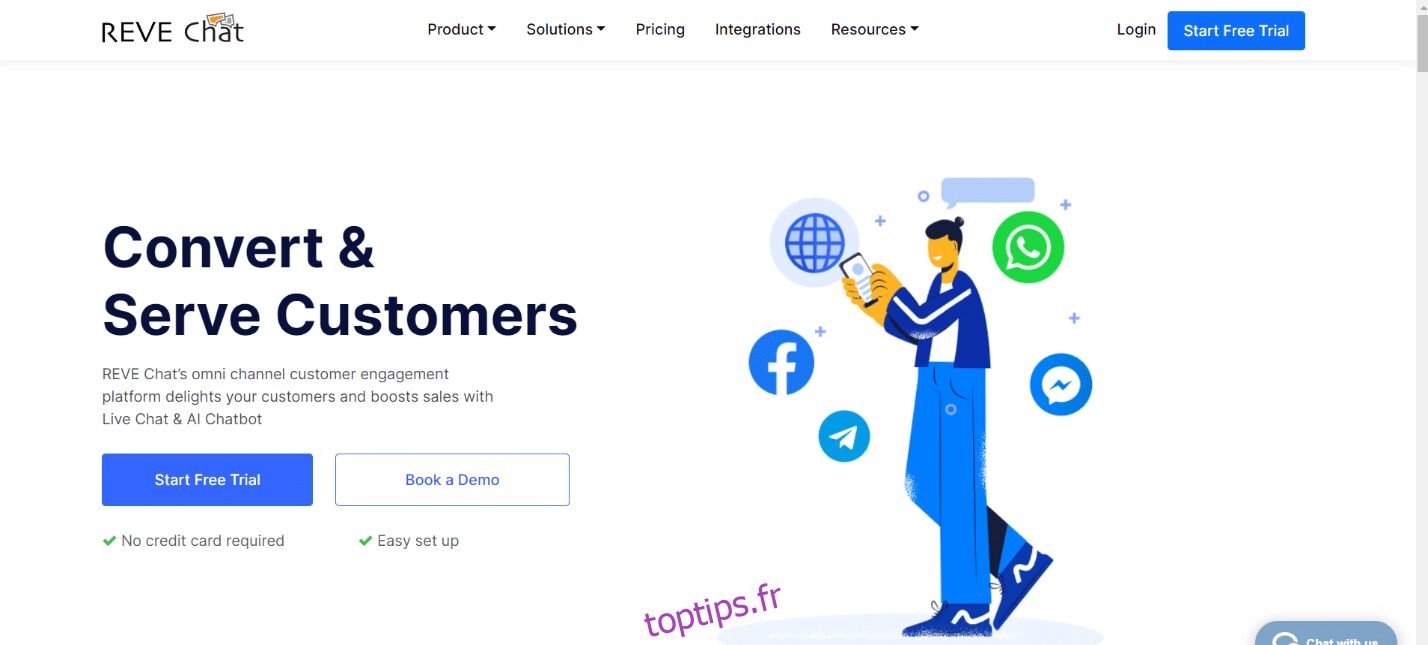 REVE Chat offre des services de chat vidéo, chat en direct et bot sans codage. Ses points forts :