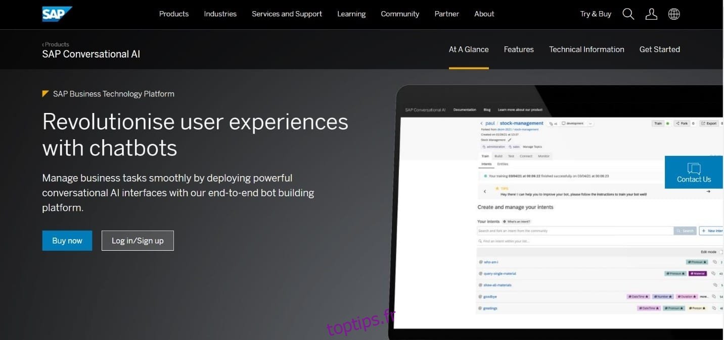 • Intégration avec diverses plateformes (Messenger, Twitter, Slack, SMS, Skype, Amazon).