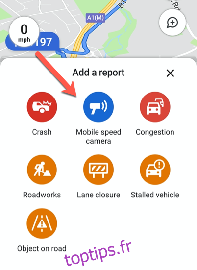Différents types de problèmes de circulation peuvent être signalés grâce à la fonctionnalité « Ajouter un rapport ».