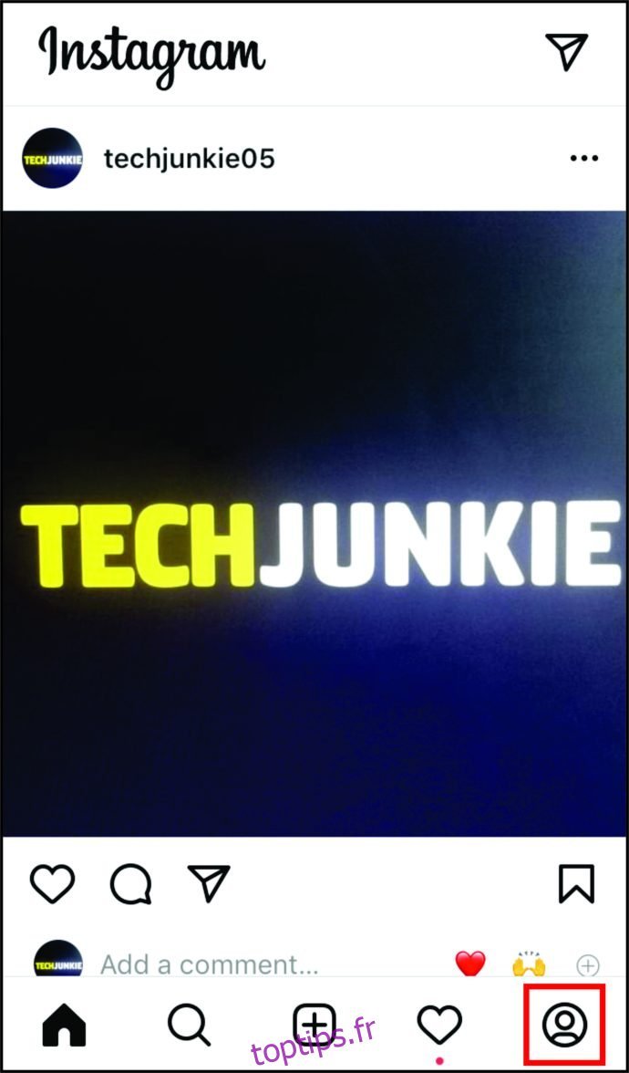 • Ouvrez l’application Instagram sur votre téléphone Android, puis cliquez sur votre « icône de profil » située en bas à droite pour accéder à votre page personnelle.