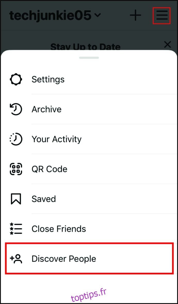 • Sélectionnez l’icône « hamburger », puis « Découvrir des personnes ».