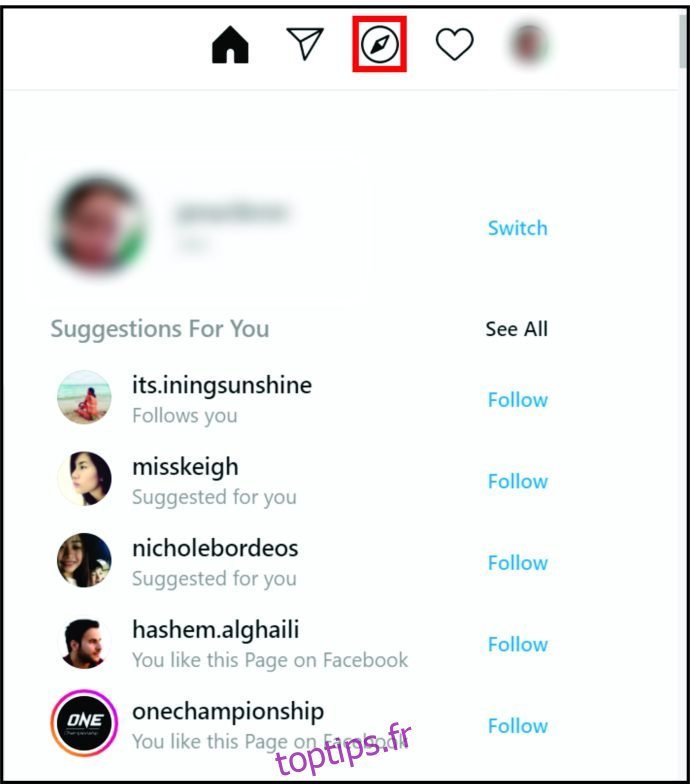 Voici comment trouver de nouveaux contacts lorsque vous utilisez Instagram sur votre ordinateur :