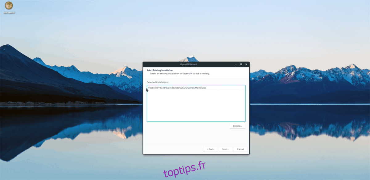 L’assistant détectera automatiquement une installation de *The Elder Scrolls III : Morrowind* sur votre PC Linux. Sélectionnez-la dans la liste pour qu’OpenMW l’utilise.