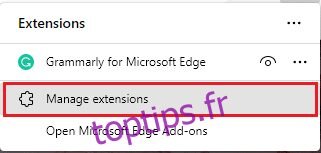3. Sélectionnez une extension et cliquez sur « Gérer les extensions ».