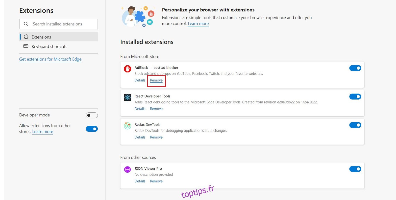 6. Si la désactivation d’une extension résout le problème, supprimez-la.