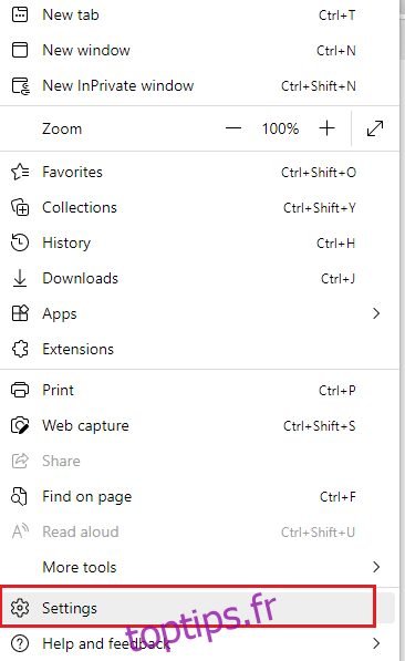 1. Lancez Microsoft Edge et accédez aux « Paramètres ».